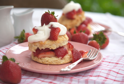 Makes 6 shortcakes (there will be extra biscuits so just prepare more strawberries and cream for a larger yield)