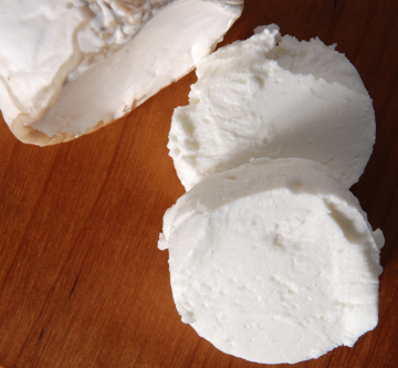 Burrata is a type of fresh mozzarella cheese from Puglia in southern Italy. Each baseball-sized round of burrata is stuffed with mozzarella curds and cream, which spill out once it has been cut. Each ball has a ‘knot’ on top where the cheese was sealed, keeping the cream inside. It is often packaged in a damp wrapping or suspended in liquid to protect it. Burrata is extremely delicate and should be consumed within a few days of production.