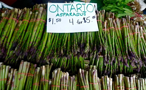- 1 lb. (450 grams) thick asparagus, woody ends trimmed and cut into 1″ pieces